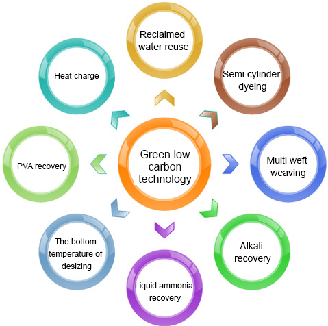 The company has won the second prize of National Scientific and Technological Progress Award by the research of “high flow membrane treatment and recycle technology of dyeing wastewater and its industrialization”, and has achieved many major breakthroughs of energy saving, emission reduction, green and low carbon technologies in the textile industry, such as jigger dyeing and water reuse technology. Besides, the company has been rated as “Advanced Energy-saving Enterprise”, “Outstanding Energy-saving Enterprise”, and be listed as national “resource-saving and environment-friendly” pilot enterprises.