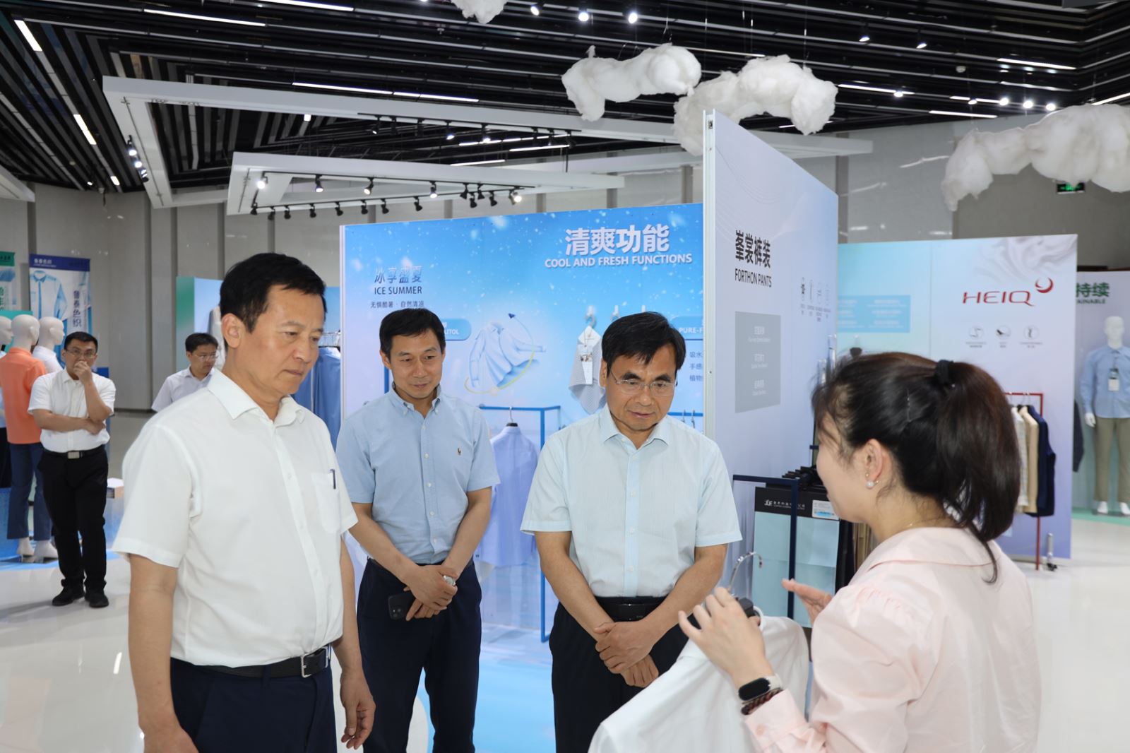 座谈会前,胡兴禹书记一行在刘子斌董事长的陪同下,参观了鲁泰面料馆,并详细了解了公司产业布局、科研创新、产品特性等方面的情况。
